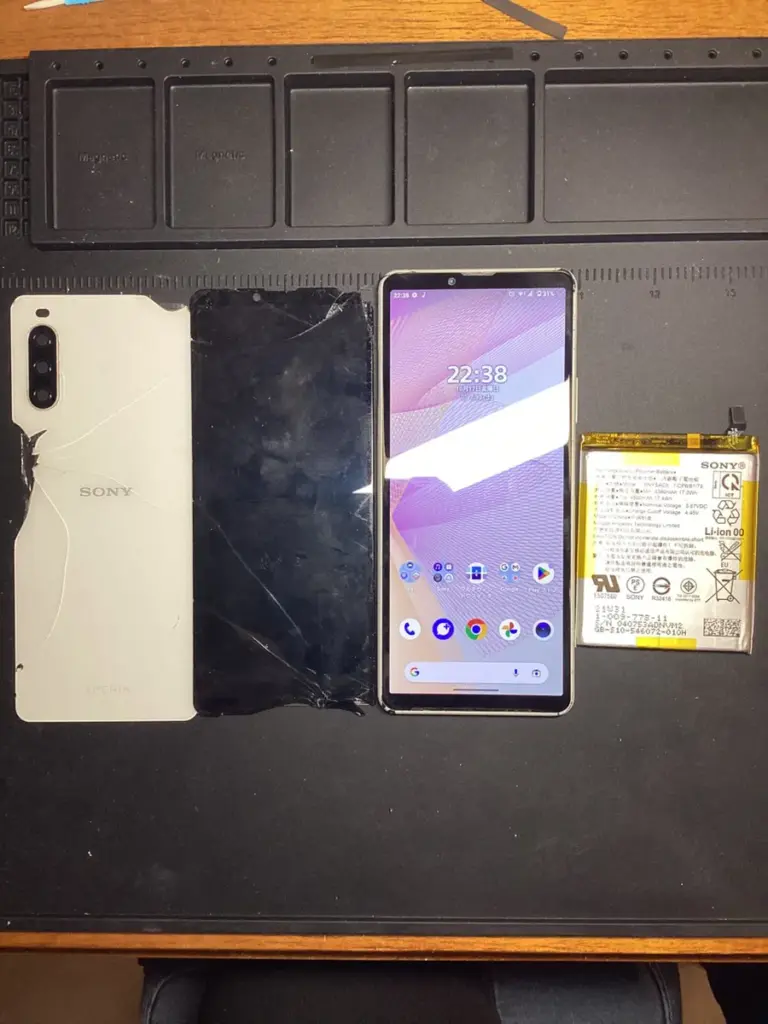 - Xperia 10 IIIの場合、画面/背面/バッテリーの同時施工:27,000円, 約75分