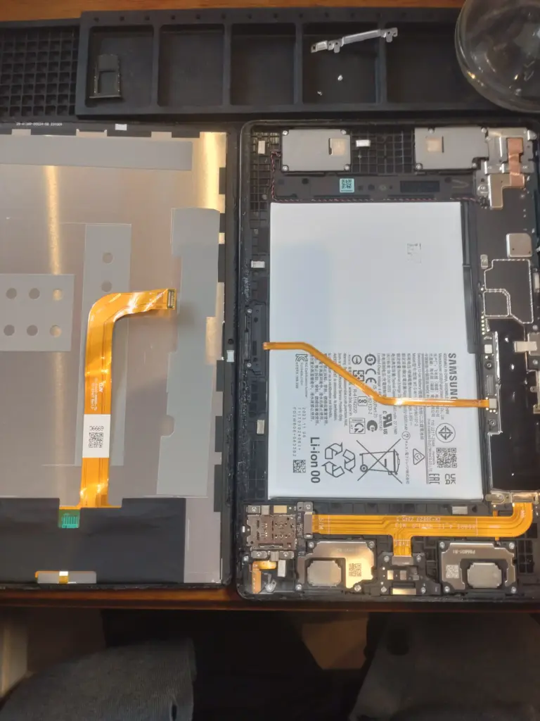 タブレットは大型ディスプレイのため、通常のスマホより慎重な作業が必要です。専用工具で丁寧に