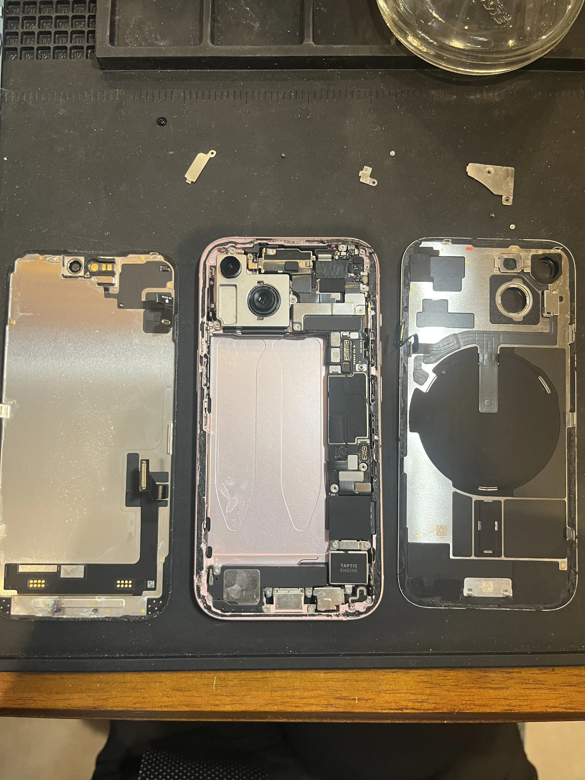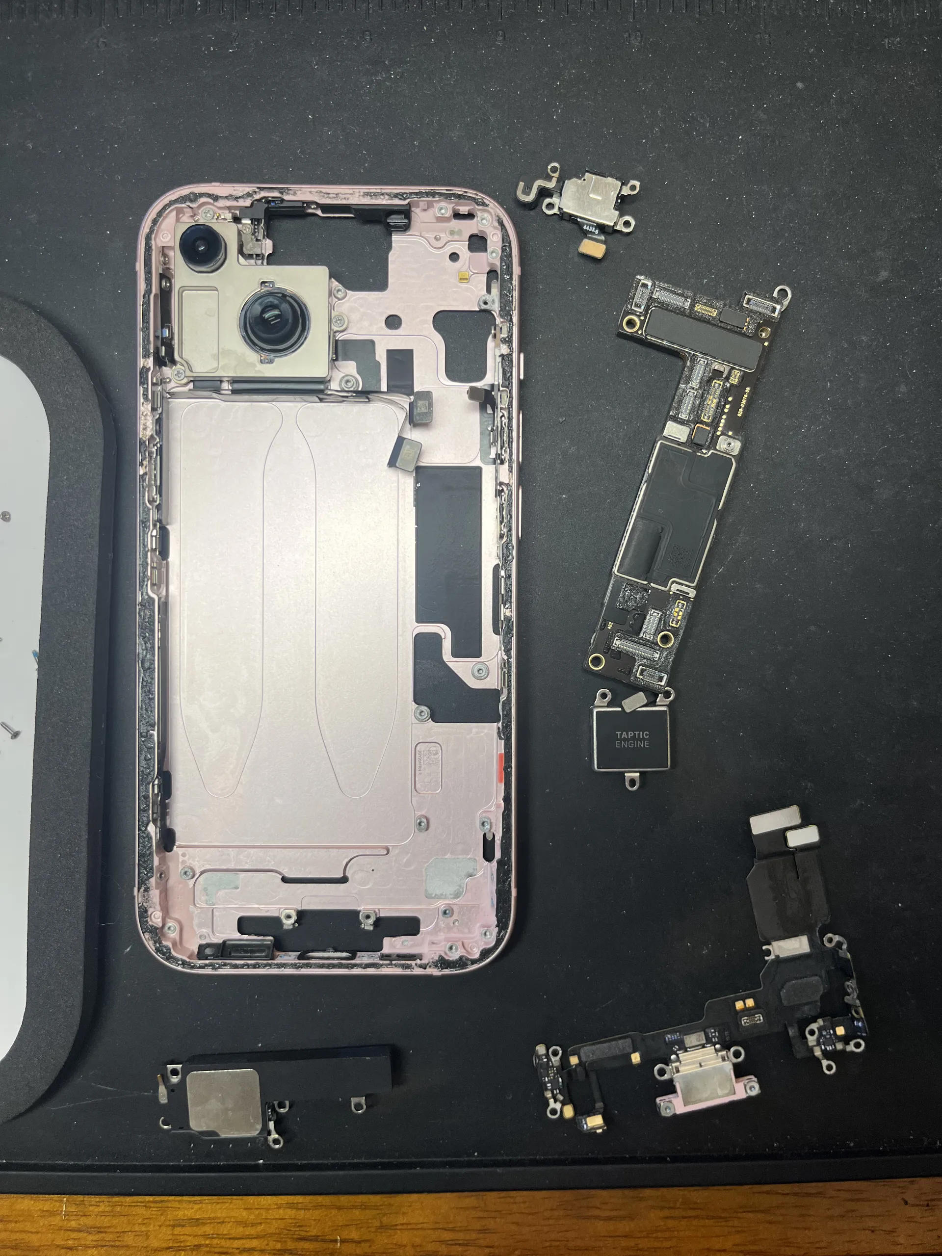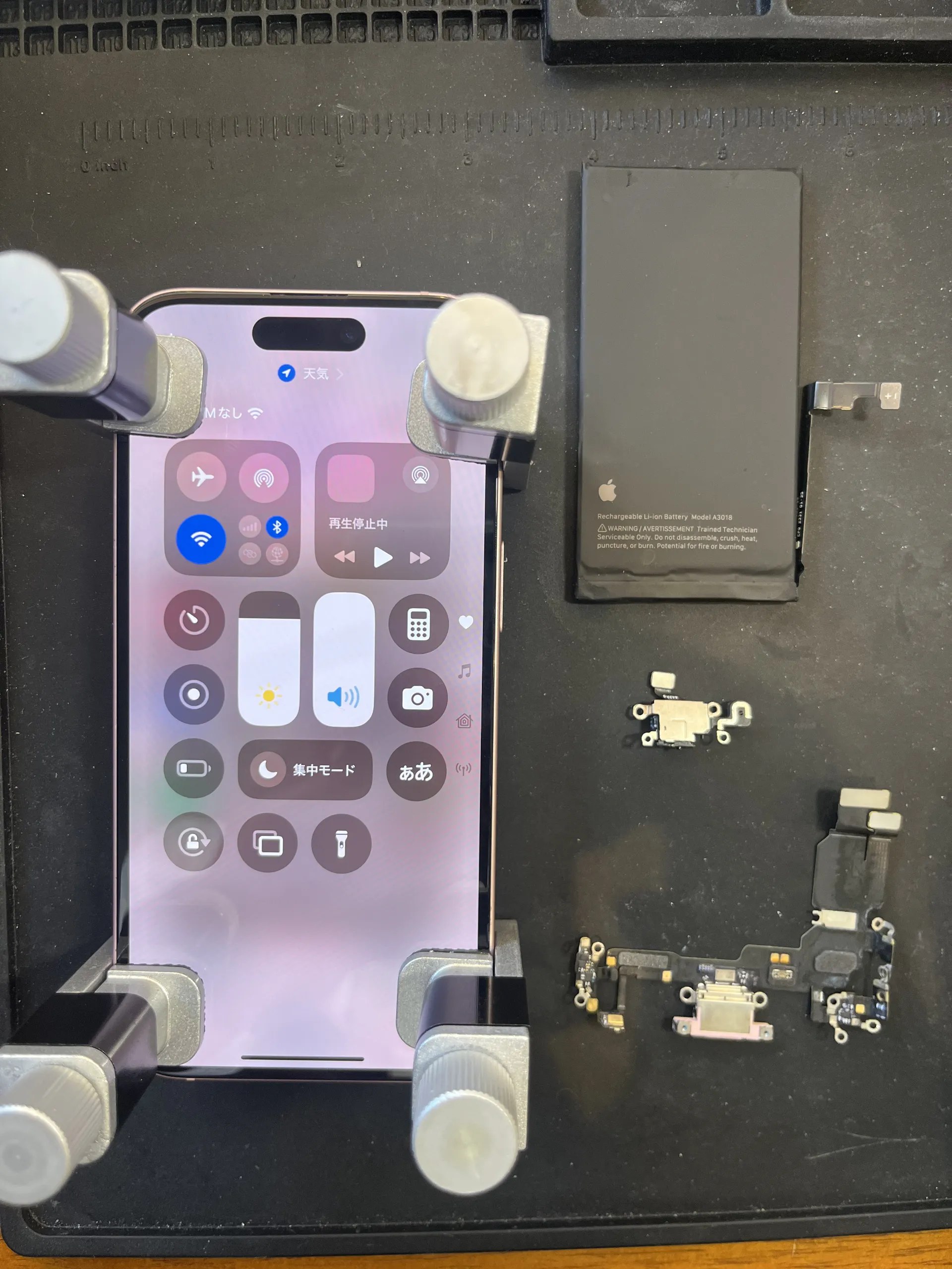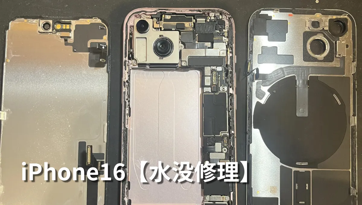 修理概要(iPhone16ドックコネクター、バッテリー、充電ポートセンサー交換、水没修理)