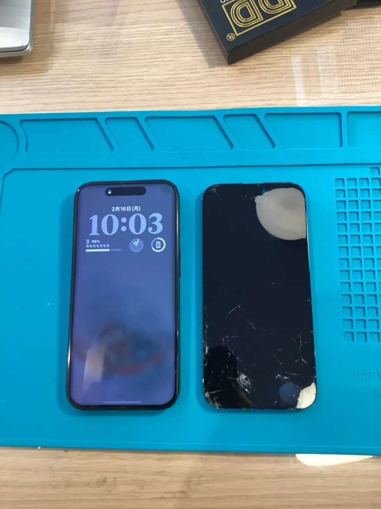 今回ご来店いただいたお客様のiPhone15Proは、落下の衝撃によるパネルの破損が発生していました。